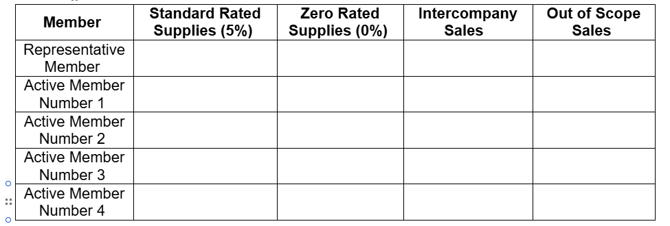 Declaration to be submitted requires representative member to provide turnover details of members for the previous 12 months period clearly bifurcated into Standard, Zero Rated, InterCompany and out of scope supplies.